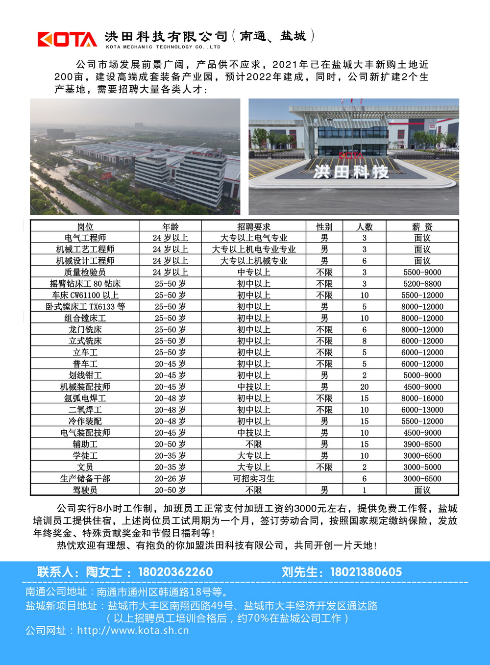 In comitatu vasa in VIII-hora opus schedule et subsicivum employees sunt Northmanni solvit overtime stipendiis de 3000 Yuan. Liberum opus cibum sunt provisum et Yancheng disciplina employees sunt provisum est accommodationem. Probationis tempus enim supra, de quibus est unum mensem, et signo labore contractus, stipendium assecurationis ad normam nationalibus ordinationes, et accipere anno-finem bonus, speciale conlationem bonuses, et feriatum beneficia?