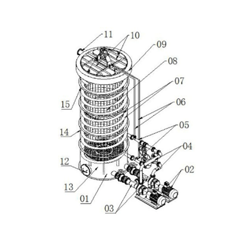 High-efficientiam aeris volenti lacus tristique complectitur aeris dissolvendi tristique corpus, in quibus aeris Dissolving tristique corpus complectitur ad tristique summo, a cisternina systema coniuncta in piscinam summo aereis tank corpus; Liquid partus ratio complectitur an acidum-repugnans circulationem sentinam, a liquidissimo pipeline, liquor outlet Pipeline, liquidum oxygeni iniectio turpis, et aere pipeline; Aeris dissolvat machinam disposita in aeris lacus corporis; Aeris Dissolving fabrica complectitur multi-iacuit Vortex fluxus alveo, velit cylinder, aer exhaurit portum, manhole fabrica, imo liquore fluxum foraminis, medium liquor foramen liquorem et superiorem liquido foramine. Liquor inest acidum repugnans circulationem sentinam connexa inferior pars aeris dissolutae tristique corpus et liquorem exitum acidum repugnans circulationem sentinam coniungitur liquido oxygeni turpis. The oxygen-rich air and the copper sulfate liquid are fully mixed through the liquid oxygen injection mixer to form a foam flow, and then a vortex flow is generated in the tank body through the multi-layer vortex flow channel on the inner wall of the tank body, forming a huge rotation inside the tank body to flush the copper material in the tank, greatly increasing the contact area and time, thereby greatly improving the copper dissolving speed and efficientiam.